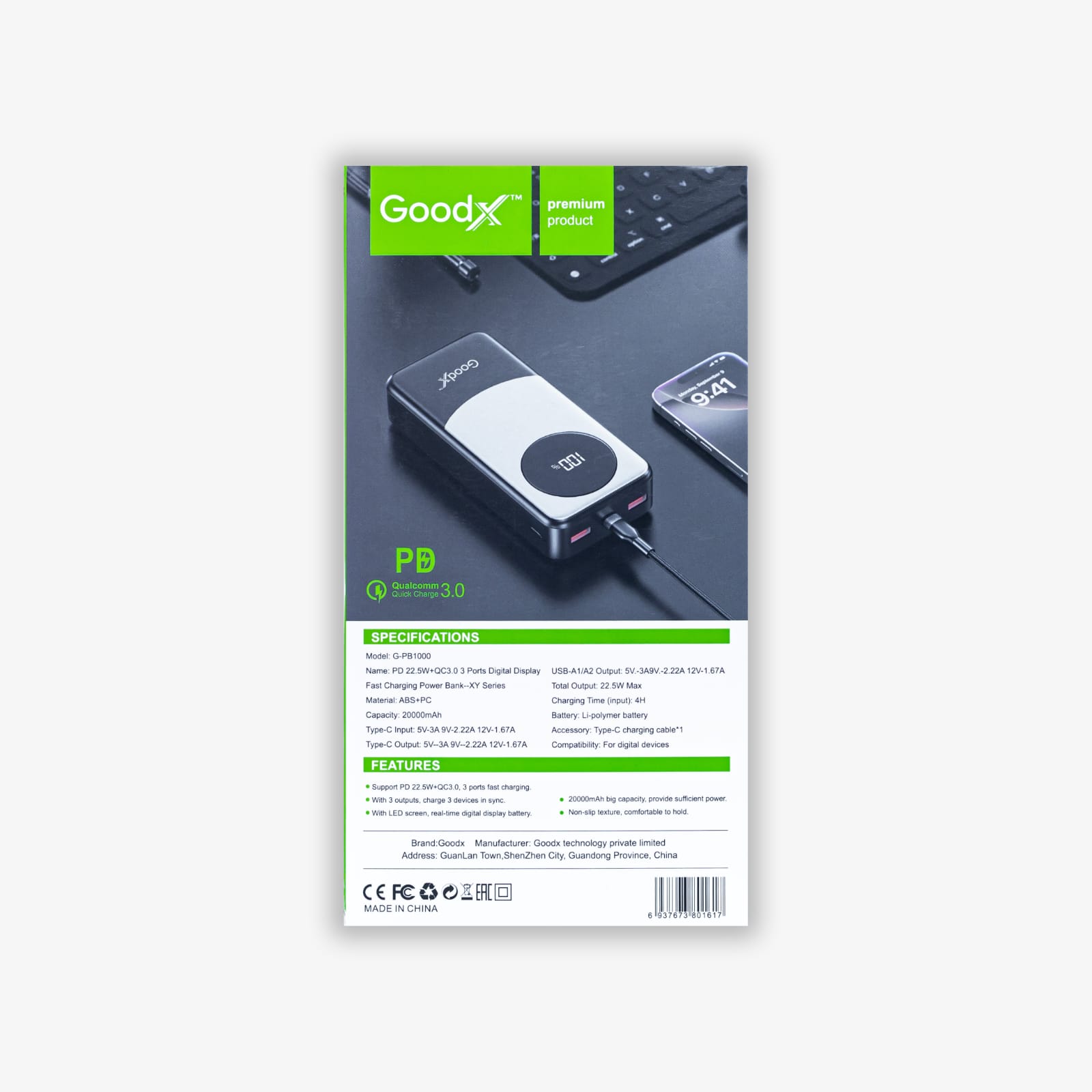 GOODX 22.5W 20000mAh POWERBANK | G-PB1000 |